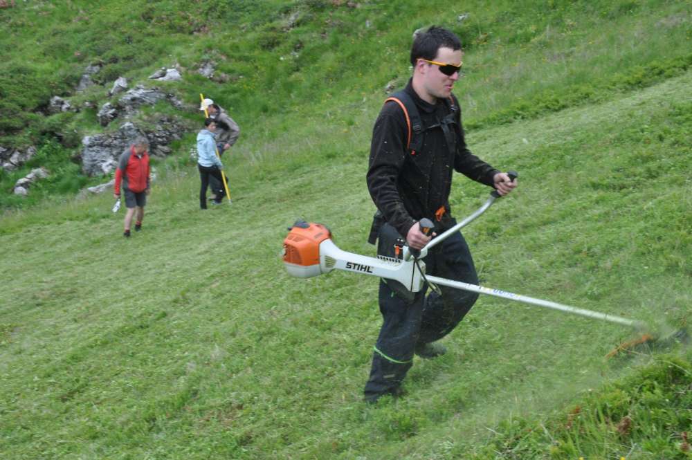 Im ersten Schritt wurden Zäune für eine Schaf- u. Rinderweide errichtet sowie Schwend- u. Mäharbeiten auf der Bergmahdfäche durchgeführt. Im Rahmen von Umweltbaustellen sind dazu freiwillige Helfer aus Polen, England, Japan und Österreich im Einsatz.