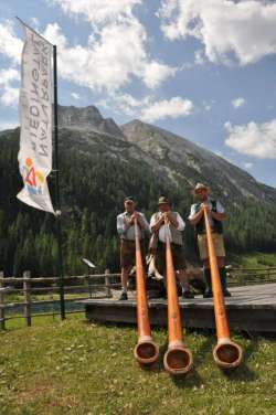 Auch dieses mal kamen alle Naturliebhaber, Musik- u. Wanderfreunde voll auf ihre Rechnung. Bei herlichem Wetter wurden die Besucher bereits beim Naturparkhaus mit Alphornklängen empfangen. Auf den im Parkgebiet bewirtschafteten Almhütten spielte die Musi auf und natürlich gab es auch Almköstlichkeiten vom Feinsten - zudem hatte jede Hütte eigens für das Fest noch eine kulinarische Speziallität auf der Speisekarte - vom Kräuterknödel, Hasenöhrl, frische Krapfen und Hennasteign direkt aus der heißen Pfanne und vieles mehr. So wanderte man von Hütte zu Hütte und bei eínem netten Plausch wurde in gemütlicher Runde "dischgriart und gesungen" - das schöne Wetter tat sein überiges dazu, um die Schönheiten des Naturparks Riedingtal zu genießen.