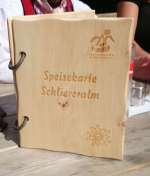 Dass im Naturpark Riedingtal alle an einen Strang ziehen, ist auch gut an der exklusiven Speisekarte aus Zirbenholz erkennbar, welche bei allen Almbetrieben zu finden ist.